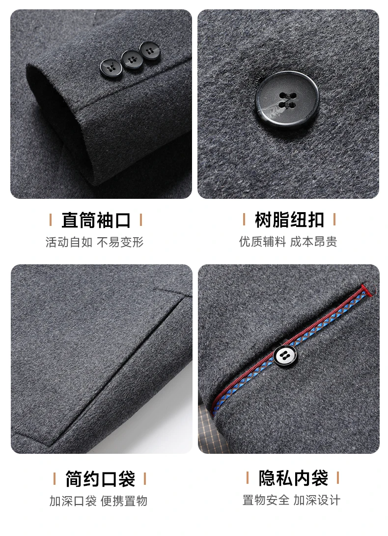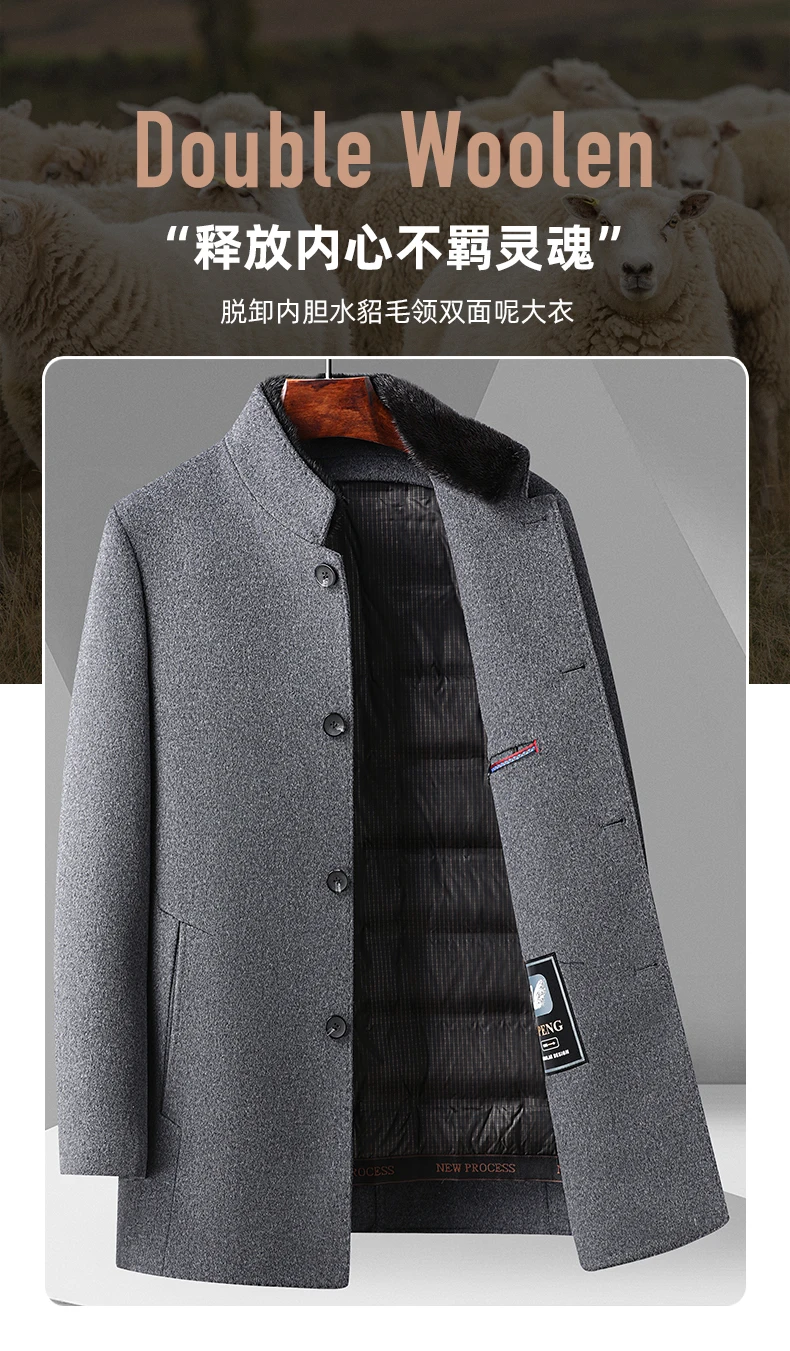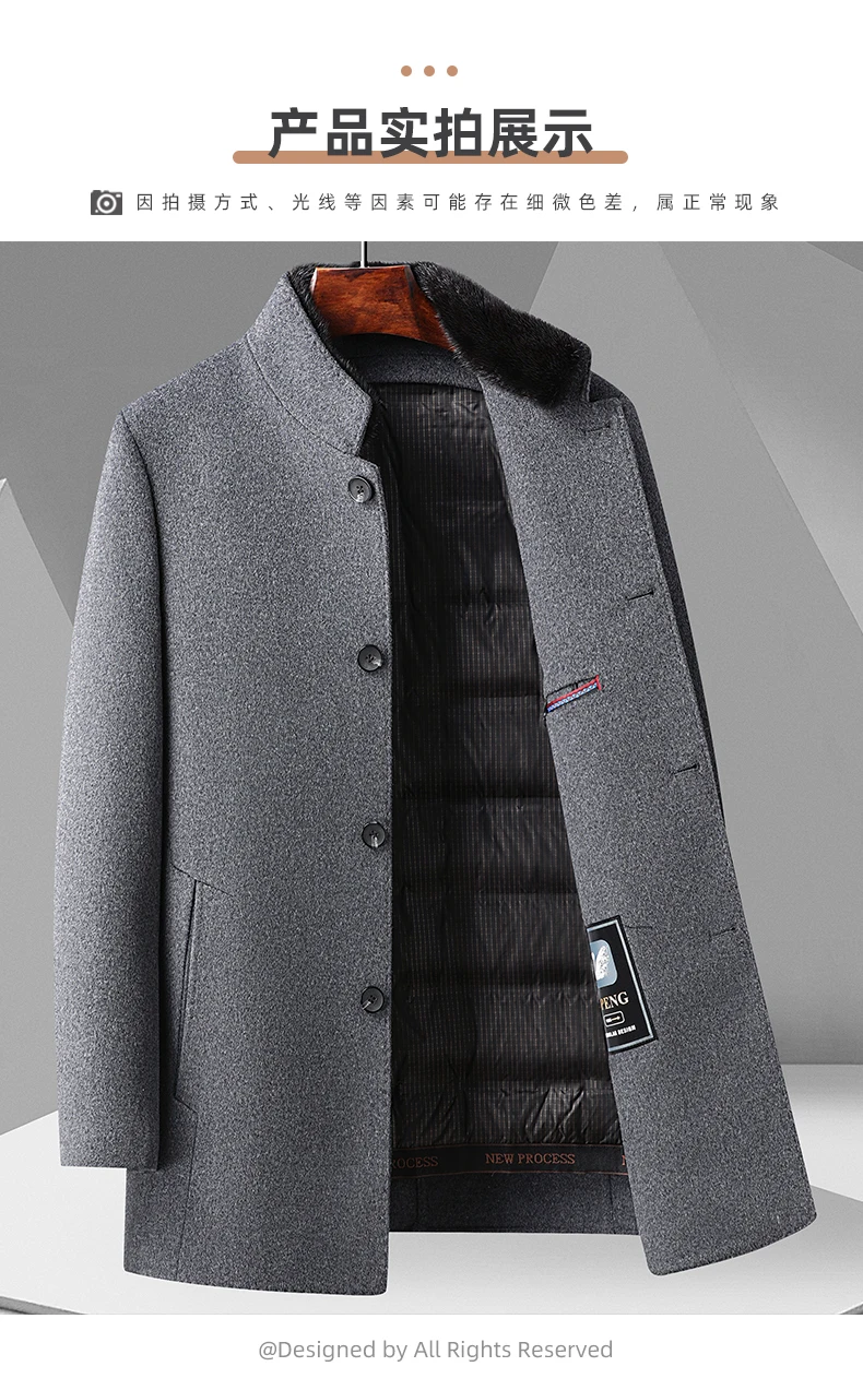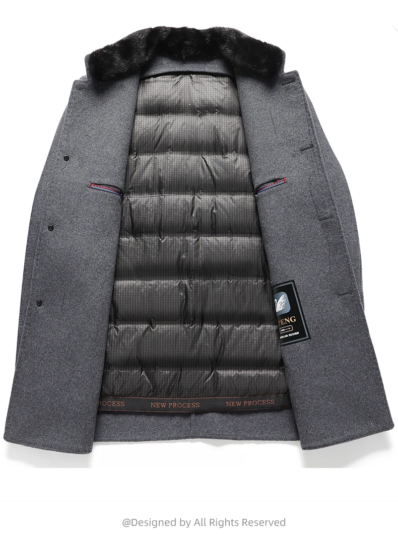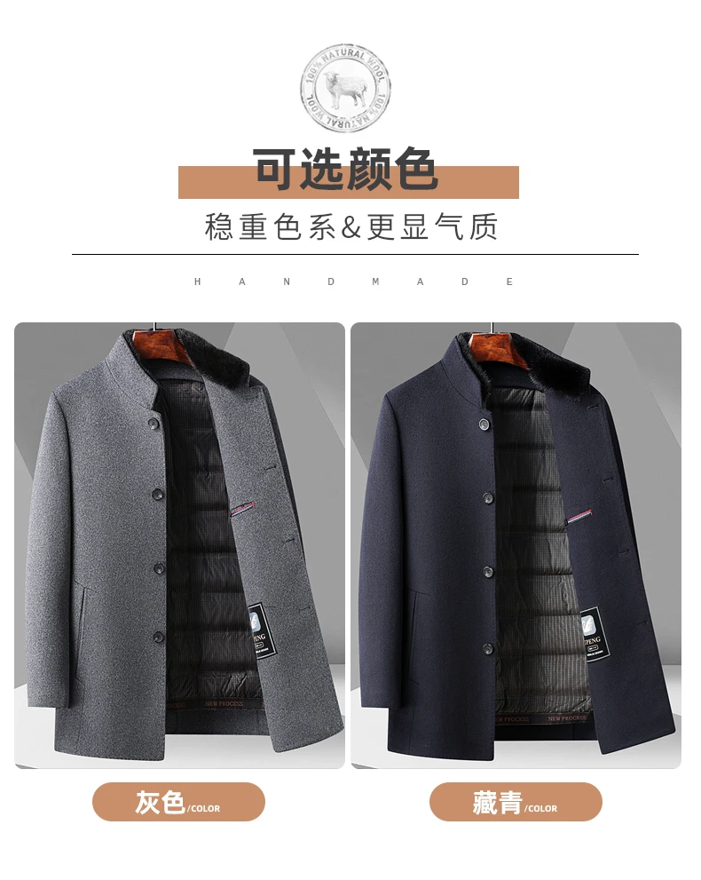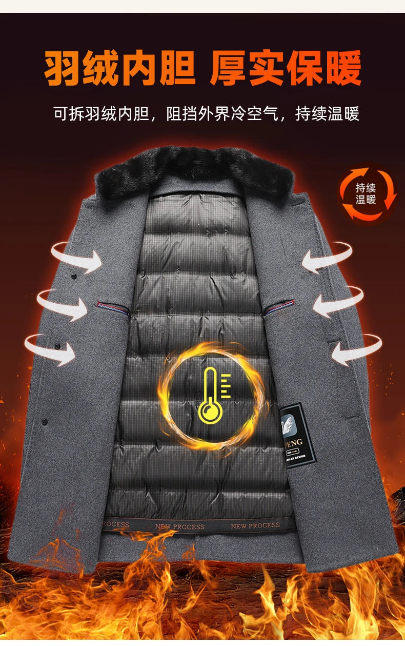 ARC Autumn and Winter Wool Coat Men's Outdoor Business Camping Trend in The Long Fashion Casual Wool Detachable Down Jacket